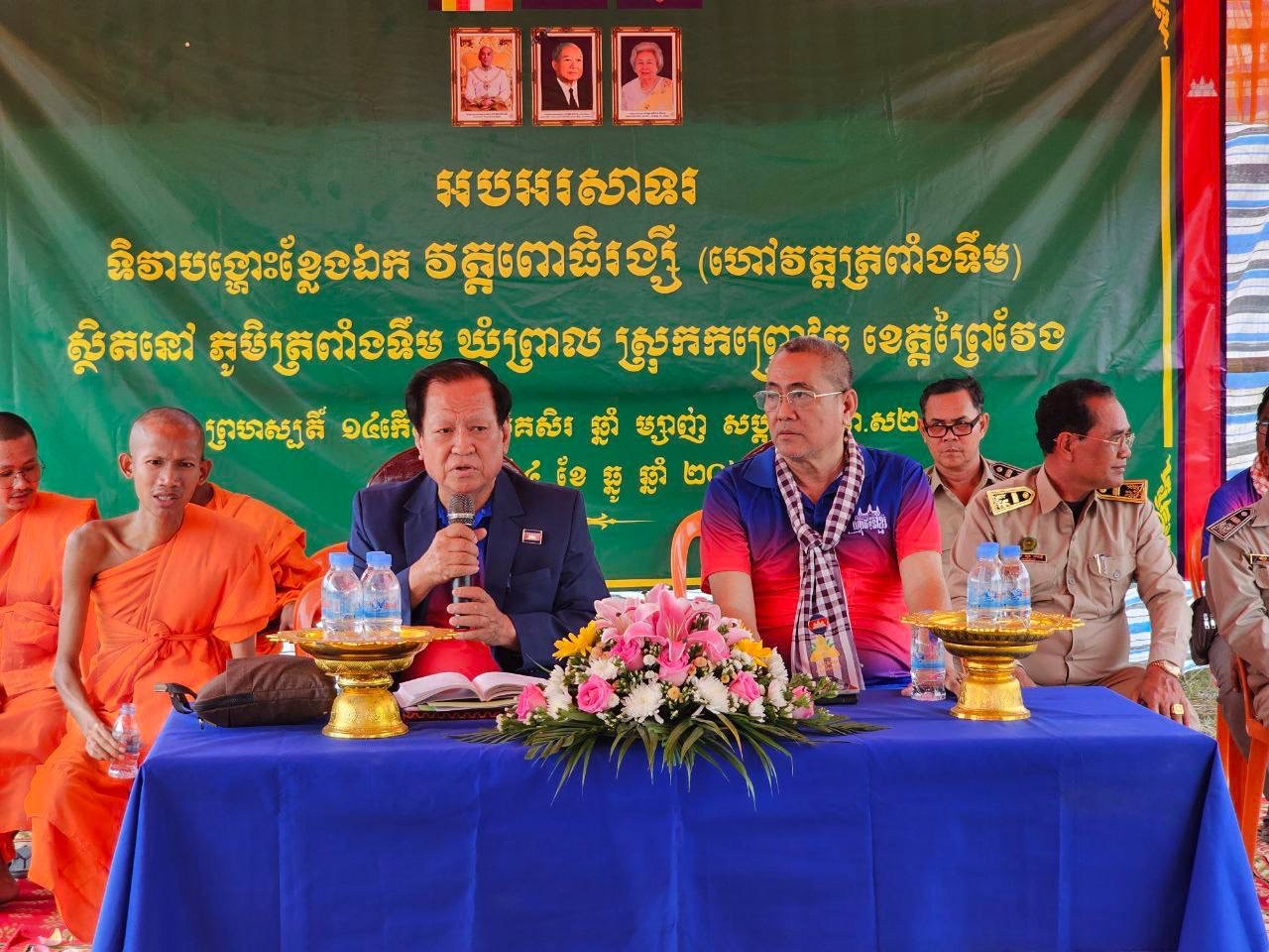 ព្រៃវែង៖ ព្រះសង្ឃ អាចារ្យ គណៈកម្មការវត្តនិងពុទ្ធបរិស័ទចំណុះជើងវត្តពោធិរង្សីហៅវត្តត្រពាំងទឹមនៅថ្ងៃទី៤-៥ ខែធ្នូ ឆ្នាំ២០២៥បានរៀបចំពីធីបង្ហោះខ្លែងឯកអនុស្សាវរីយ៍ភូមិត្រពាំងទឹម ដែប្រព្រឹត្តទៅក្រោមអធិបតីភាពលោក សាយ ឬទ្ធី ក្រុមការងារចល័តចុះមូលដ្ឋានខេត្តព្រៃវែង និងលោក មាស ច័ន្ទរិទ្ធ ក្រុមការងារចល័តចុះមូលដ្ឋានខេត្តព្រៃវែង ស្ថិតនៅវត្តពោធិរង្សី (ហៅវត្តត្រពាំងទឹម) ភូមិត្រពាំងទឹម នៅឃុំព្រាល ស្រុកកញ្ជ្រៀច ខេត្តព្រៃវែង។